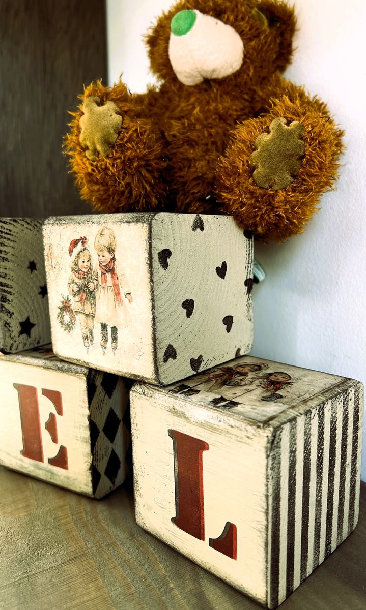 Une légère patine texturera l'ensemble. Il sera possible de venir personnaliser votre tableau au nom de l'enfant.