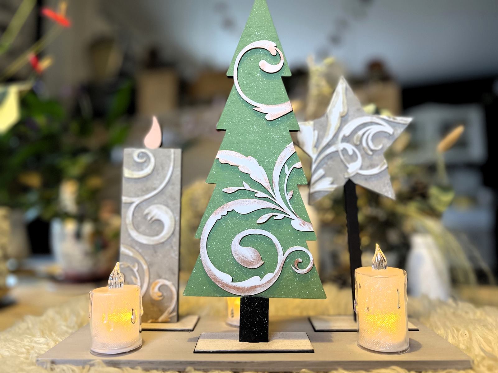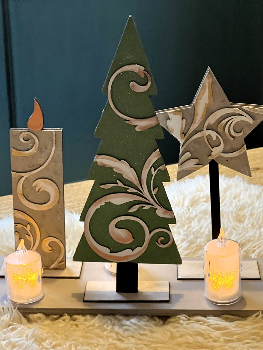 Le support que vous allez réaliser d'une douce patine et d'un pochoir en relief pourront, si vous le souhaitez, faire l'objet d'un cadeau en l'associant avec les jolies serviettes proposées à l'atelier. A moins que vous ne le gardiez jalousement pour vous.