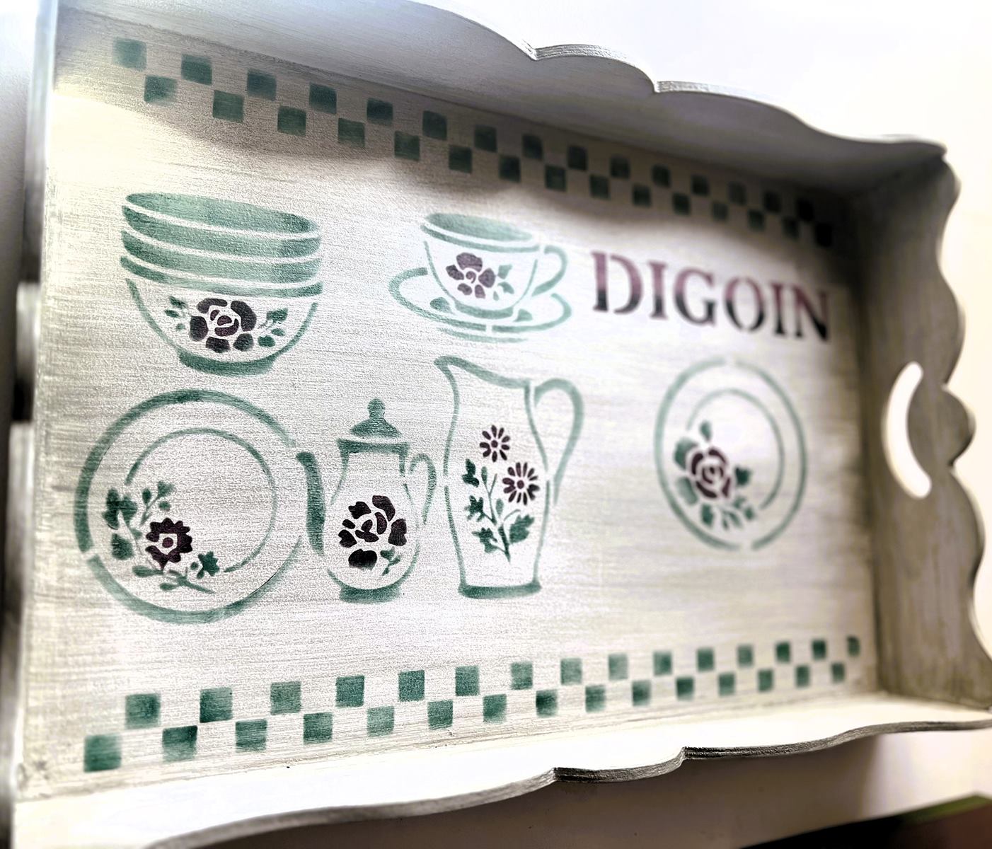 Telle les tables basses japonaises, avec ses courbes harmonieuses, cette table introduira un parfum d'orient si vous l'exploitez avec le nouveau pochoir Carpe Koï Atelier Gris Céleste. Mais tous les pochoirs de l'atelier seront à votre disposition pour inventer l'univers qui vous ressemble.
