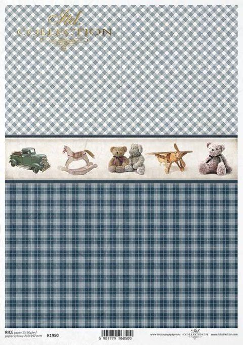 Papier de Riz Carreaux bleus jouets anciens R1953