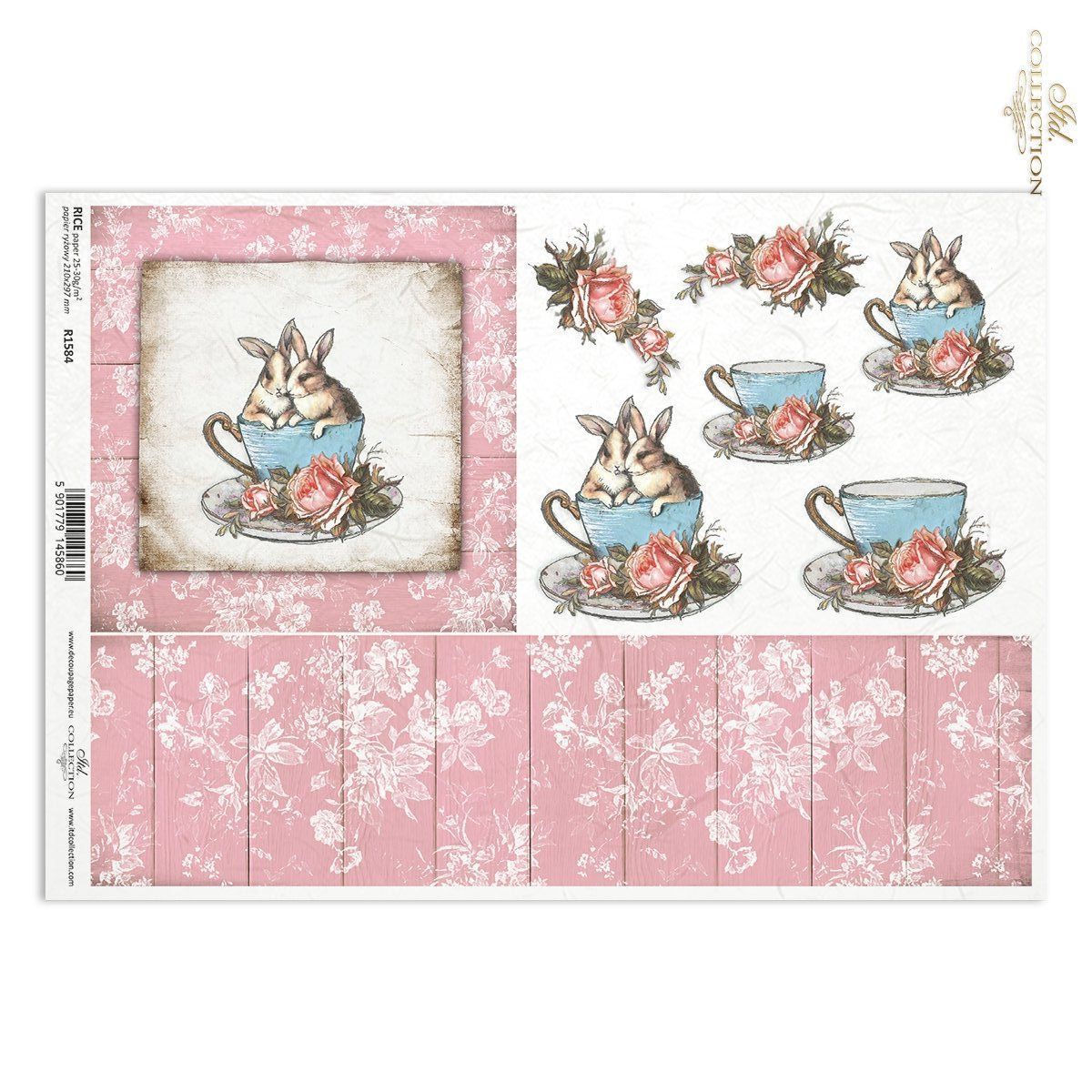 Papier de riz impression Bébés lapins Shabby R1584