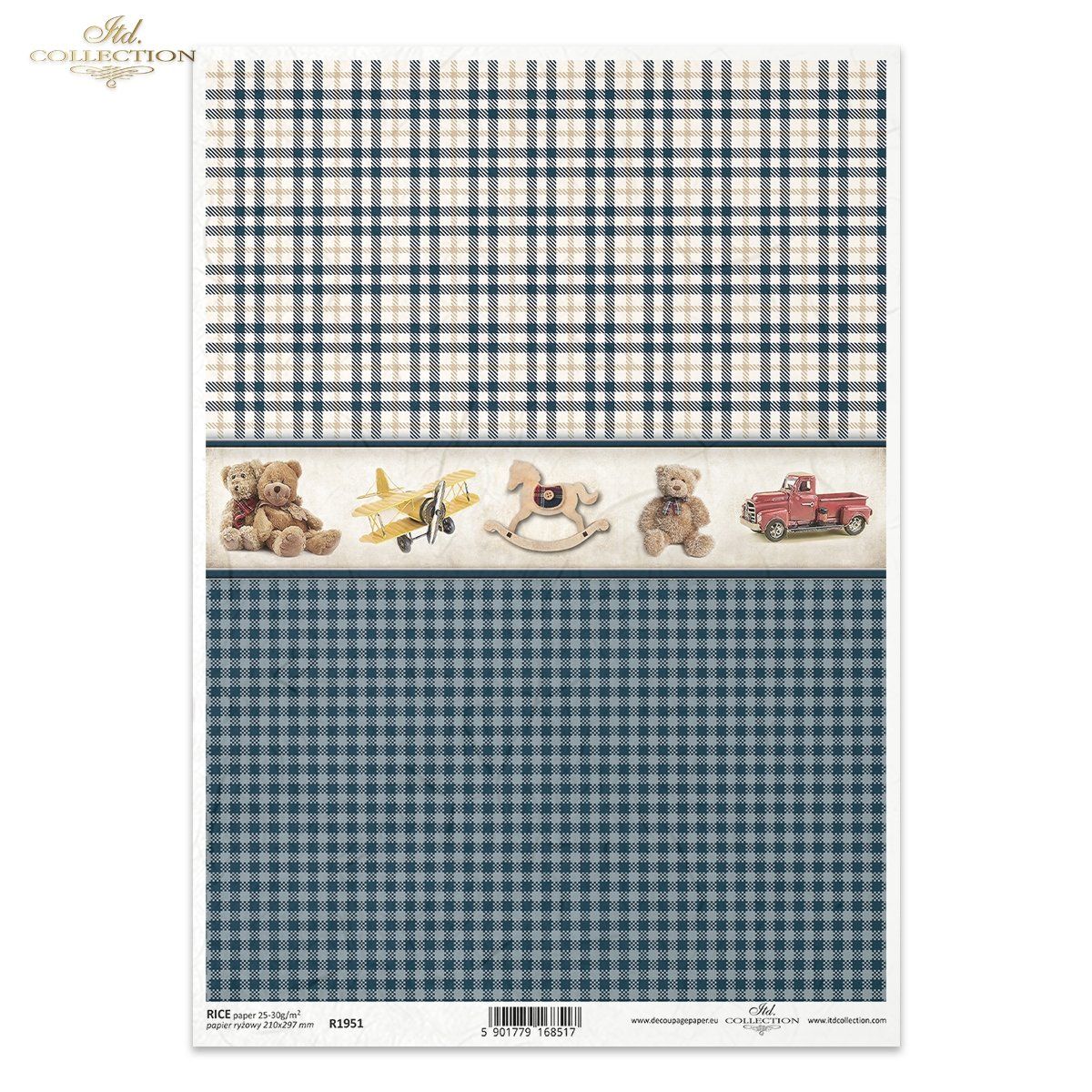 Papier de riz impression Carreaux bleus jouets rétro R1951