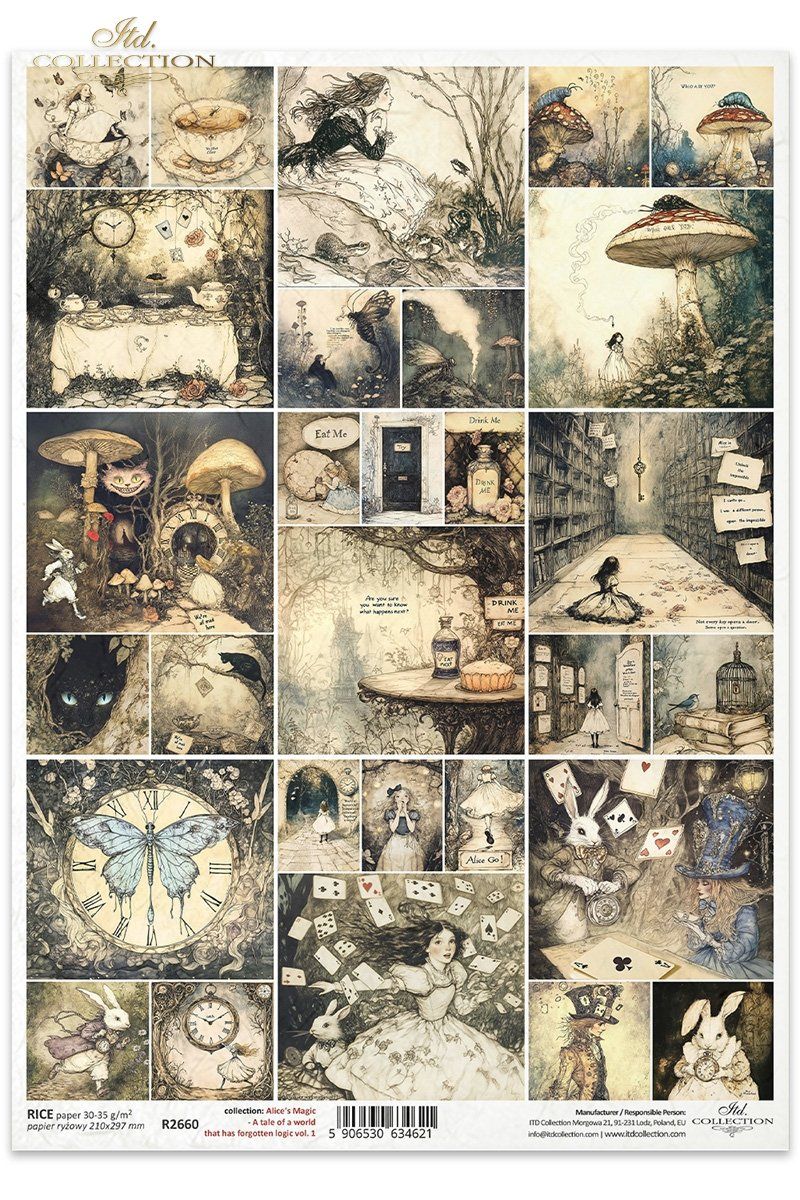 Papier de riz impression Collection Alice au Pays des merveilles Composition magique R2660