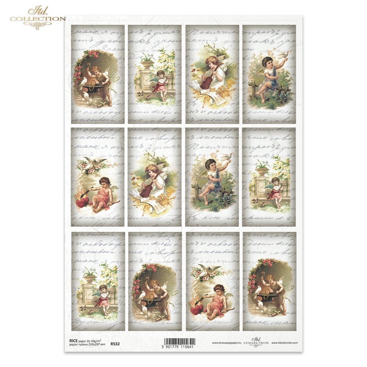 Papier de riz impression Etiquettes Chérubins manuscrit - 12 motifs différents - R0532