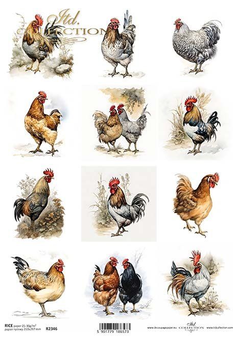 Papier de Riz Etiquettes Poules et Coqs R2346