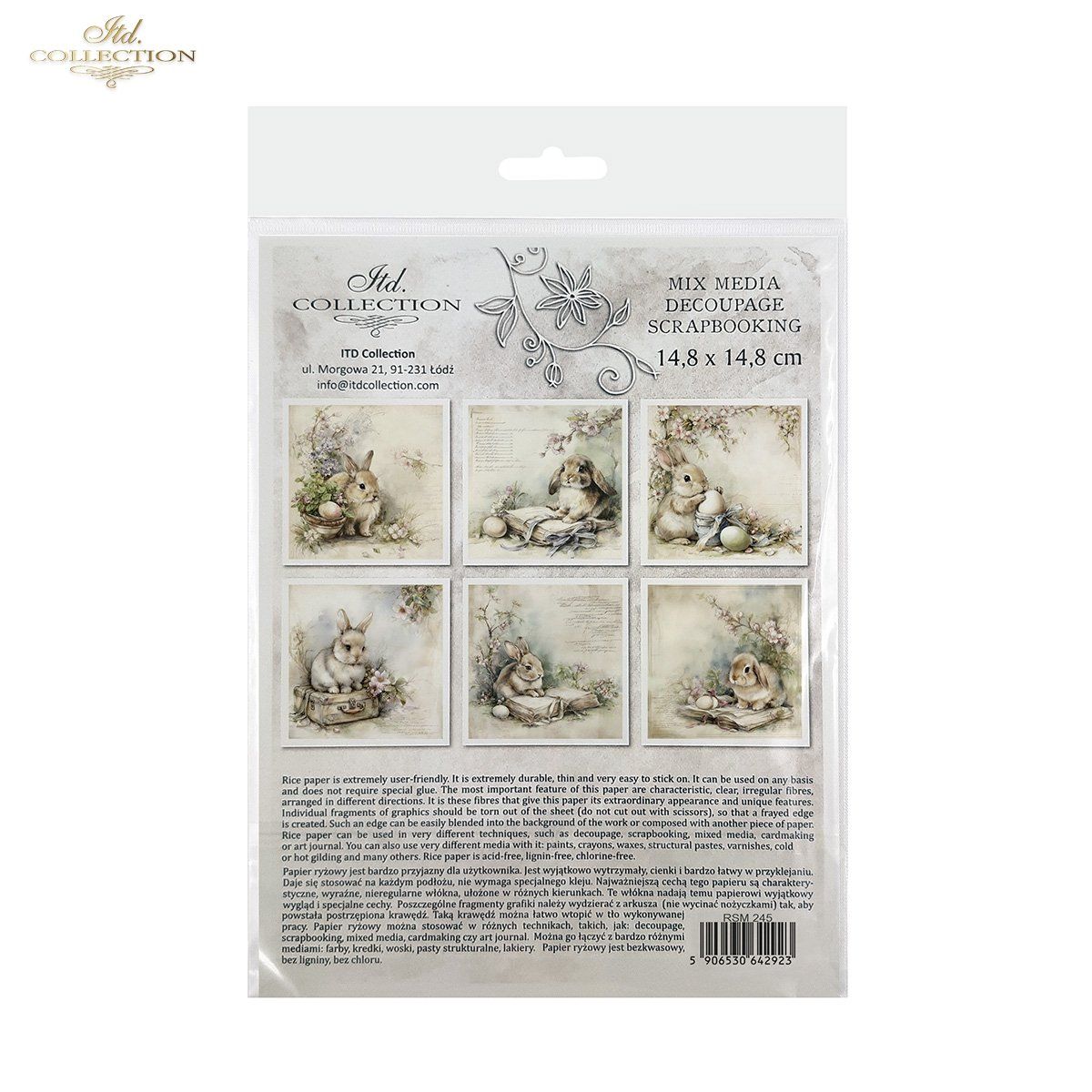6 papiers de riz 14,8 cm x 14,8 cm avec un seul graphique (6 graphiques différents), par emballage