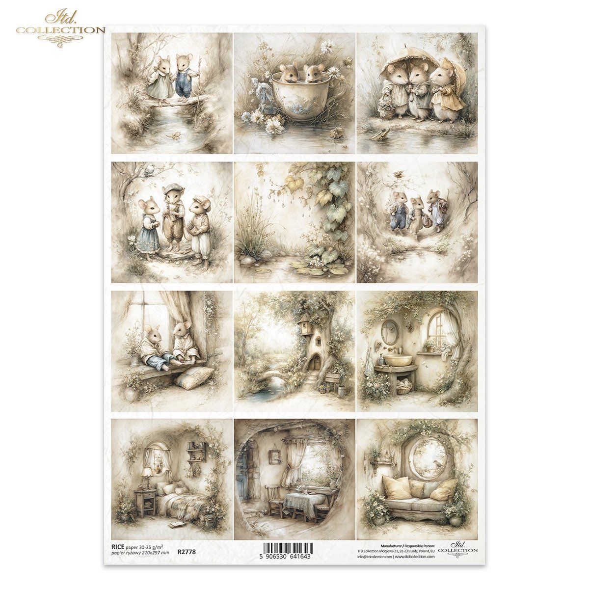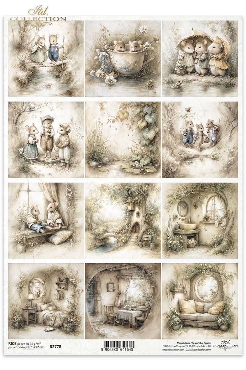 Papier de riz impression Le monde des souris Printemps R2778