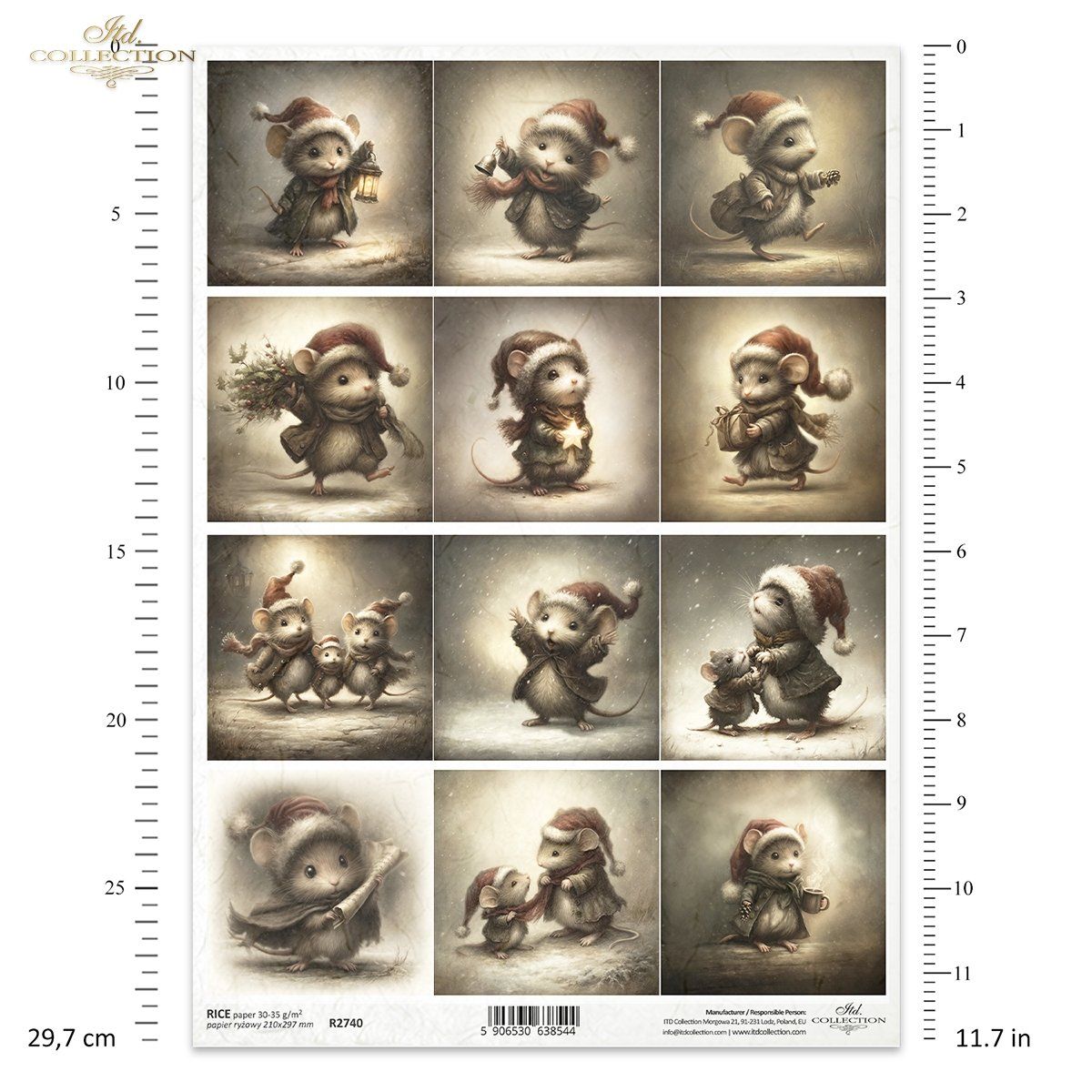 Papier de riz impression Les souris de l'hiver R2740 - 12 impressions différentes