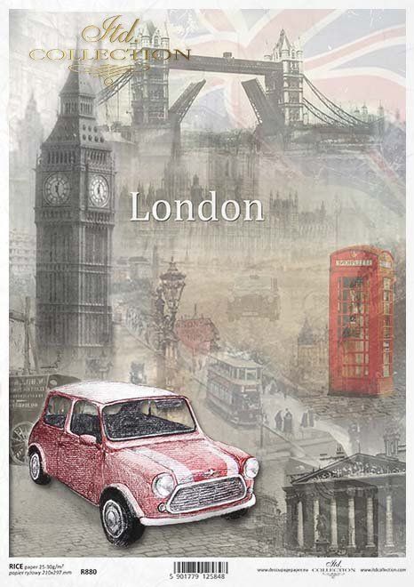 Papier de riz impression Mini Copper Londres R0880