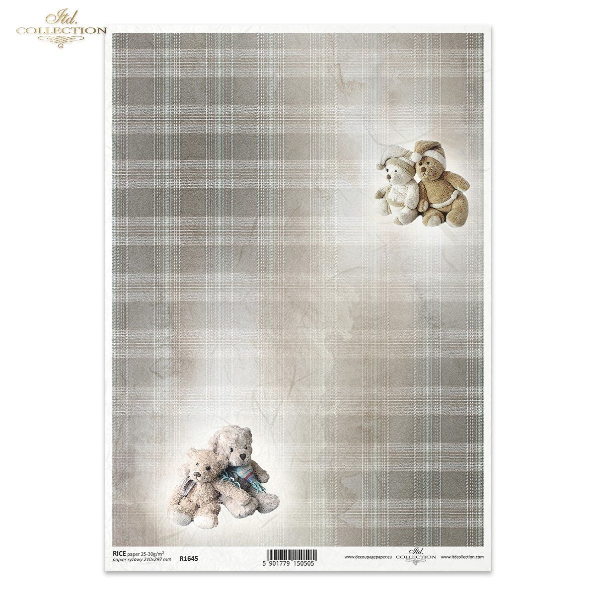 Papier de riz impression Ours en Peluche Fond écossais R1645
