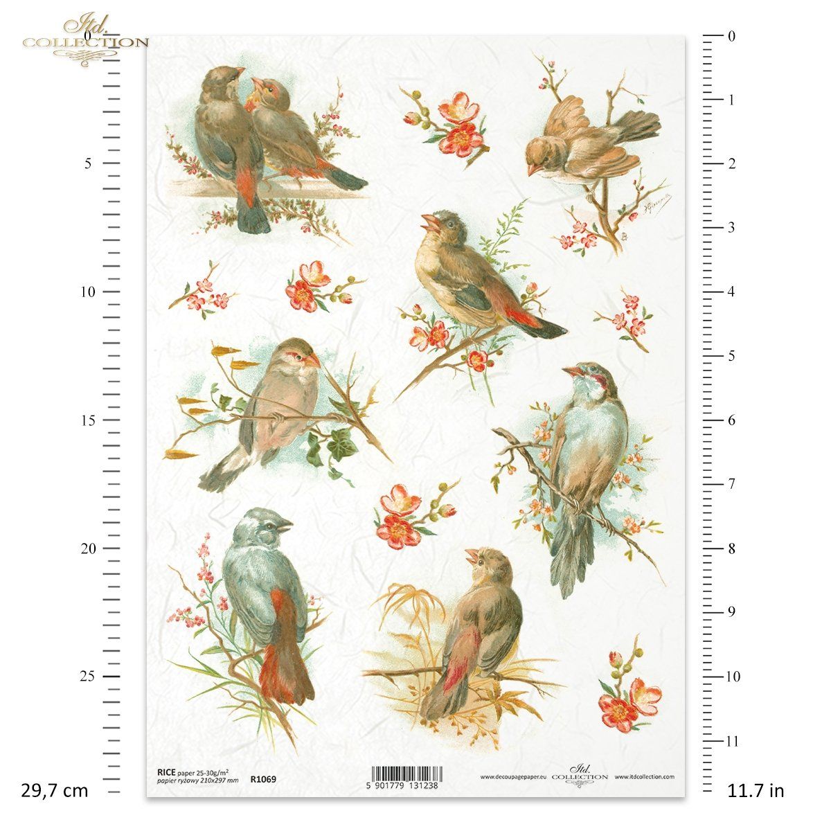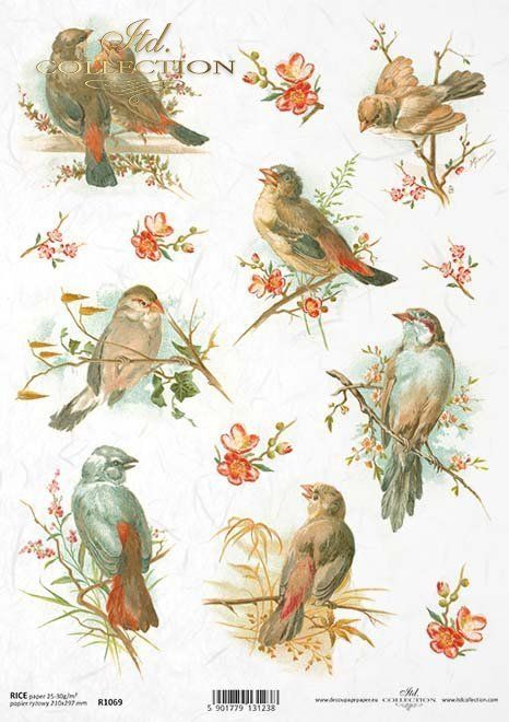 Papier de riz impression Petits oiseaux dans le cerisier R1069