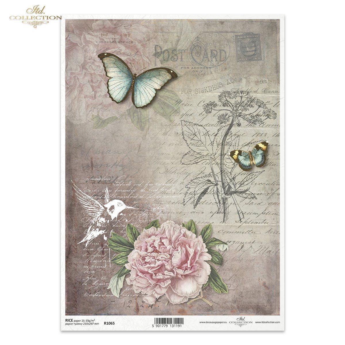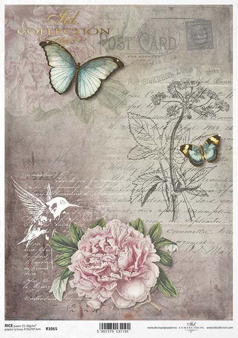 Papier de Riz Pivoine et Papillon R1065