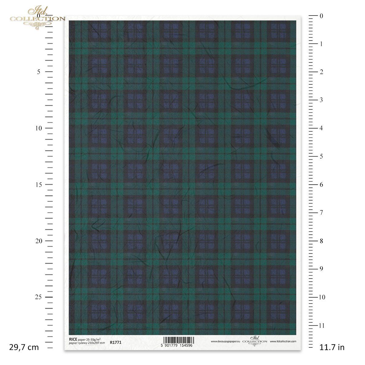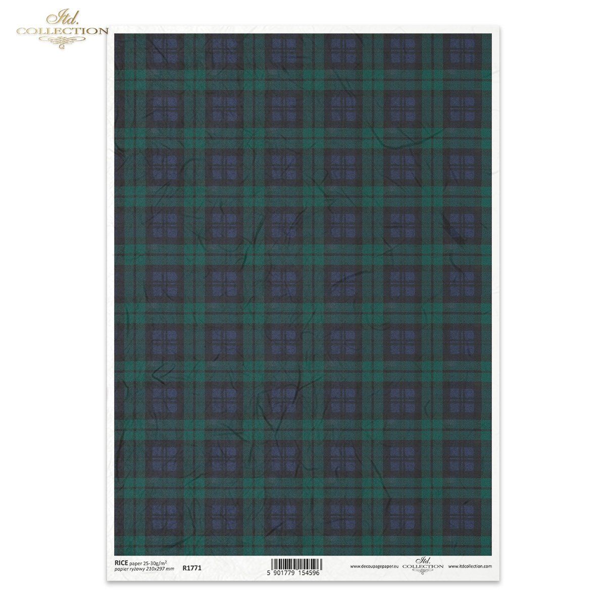 Papier de Riz Tartan Marine et Vert R1771