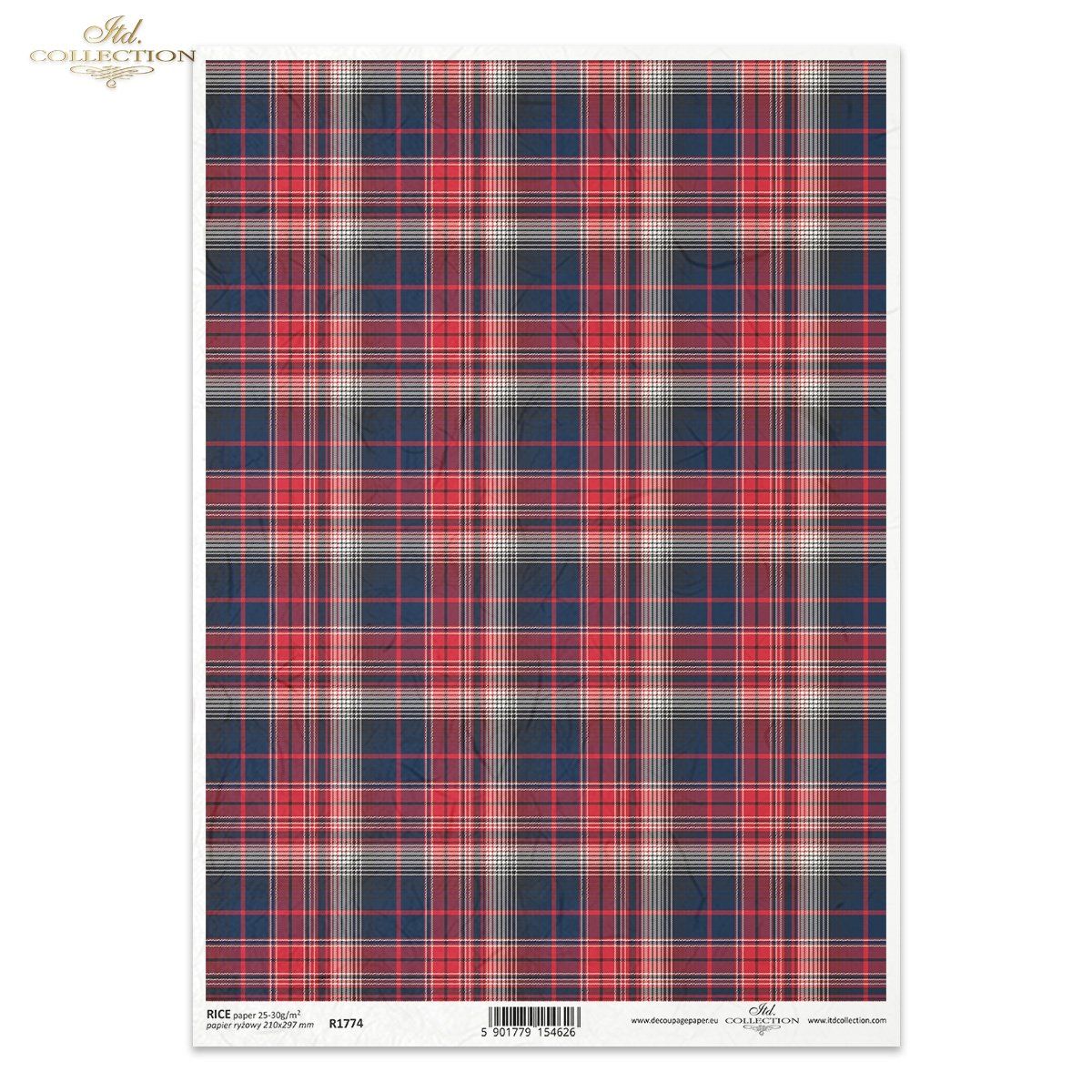 Papier de Riz Tartan Plaid Marine Rouge R1774