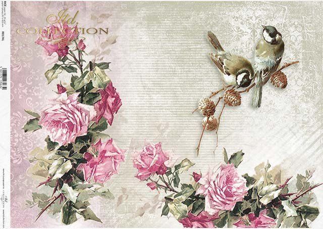Papier de riz impression Tea Time Roses et Mésanges R0174L