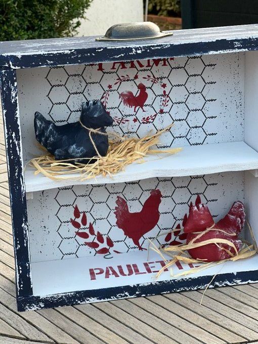 Vous pouvez réaliser un pochoir en relief grâces aux pâtes à pochoir disponibles sur le site.